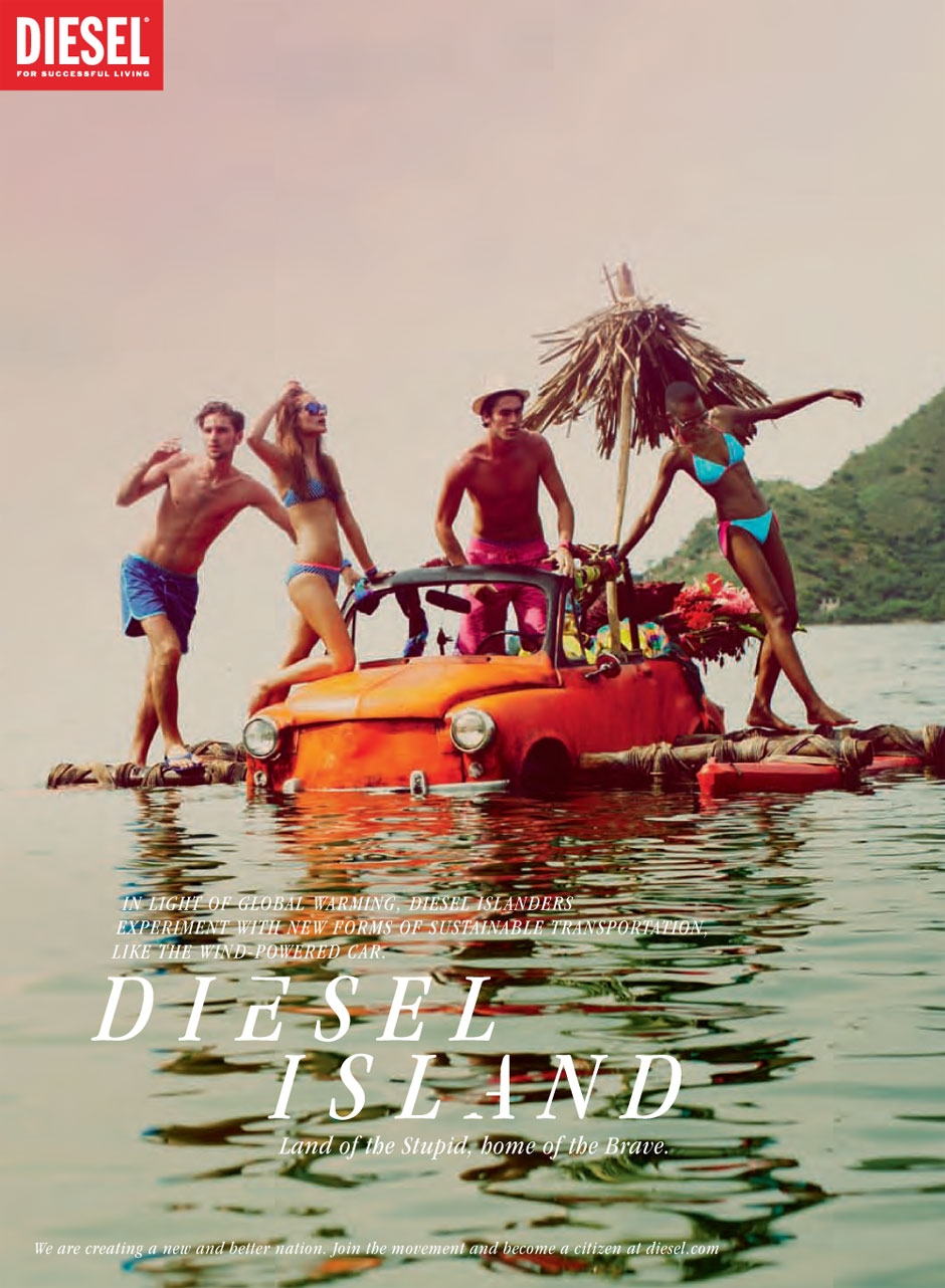 There are no water shortages on Diesel Island, because everyone showers in groups. All people are welcome, and the only energy this country exports is of the sexual kind. Yes, it’s another cheeky campaign from Diesel. In this fall/ winter 2011 campaign Diesel brings their brand of urban cool to a new Island settlement where the economy isn’t in crisis, where no systems are adopted that end in ism, and where reality shows don’t exist. The only downside to the Island is that it’s fictional. But while Diesel’s Island may not be real, the clothing certainly is. And if you want to pick up your new fix of denim and casual wear then the next best thing to an Island ticket is spending money.